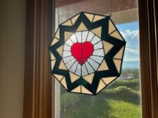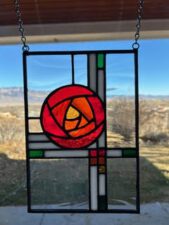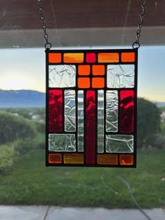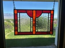 After 33 years of owning my own adobe construction business, and 11 years of me and my wife operating a winery out of our house, my body finally told me to find something else to do that will let you express your artistic side, but not be so detrimental on the physical body. So, I dove into my past flirtation with stained glass, and decided to make it the focus of my next step in life. All our pieces are hand done, and with few exceptions, all original designs. We can do our own designs, or we can do custom ones, and we can do repairs on existing pieces.