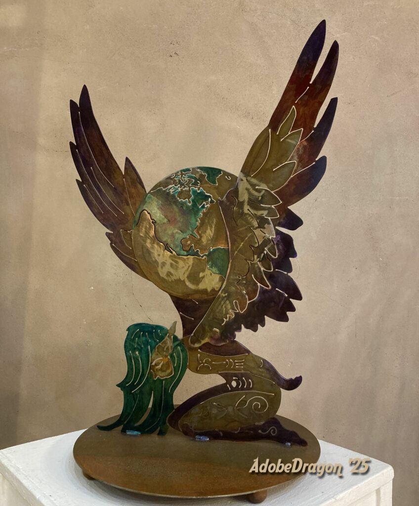 Pat’s favorite medium is steel which allows her to engage her inner pyromaniac. Because nothing says “art” like setting your shoelaces on fire. Often multimedia, her work includes metal clay, polymer clay, leather, and random detritus found by the roadside.